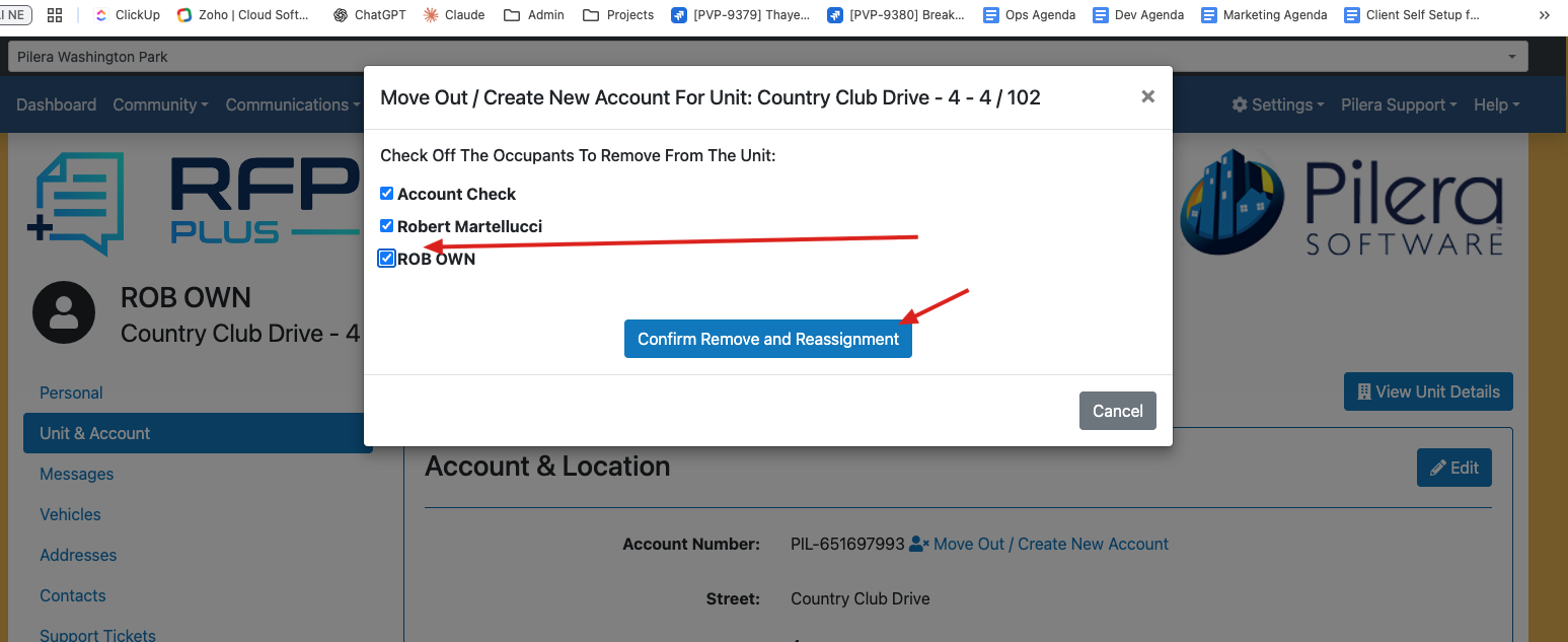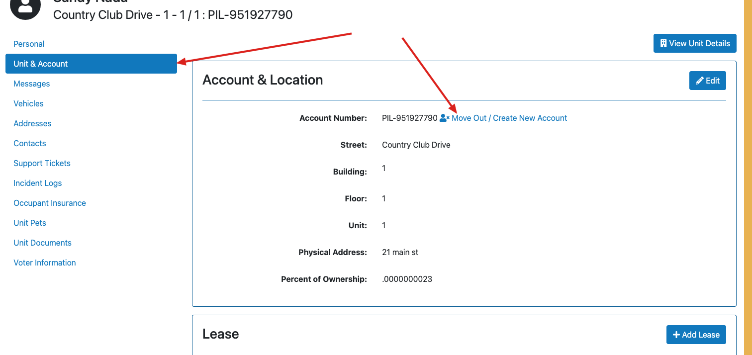 Navigate to the "Unit & Account" section and select "Move Out/Create New Account"