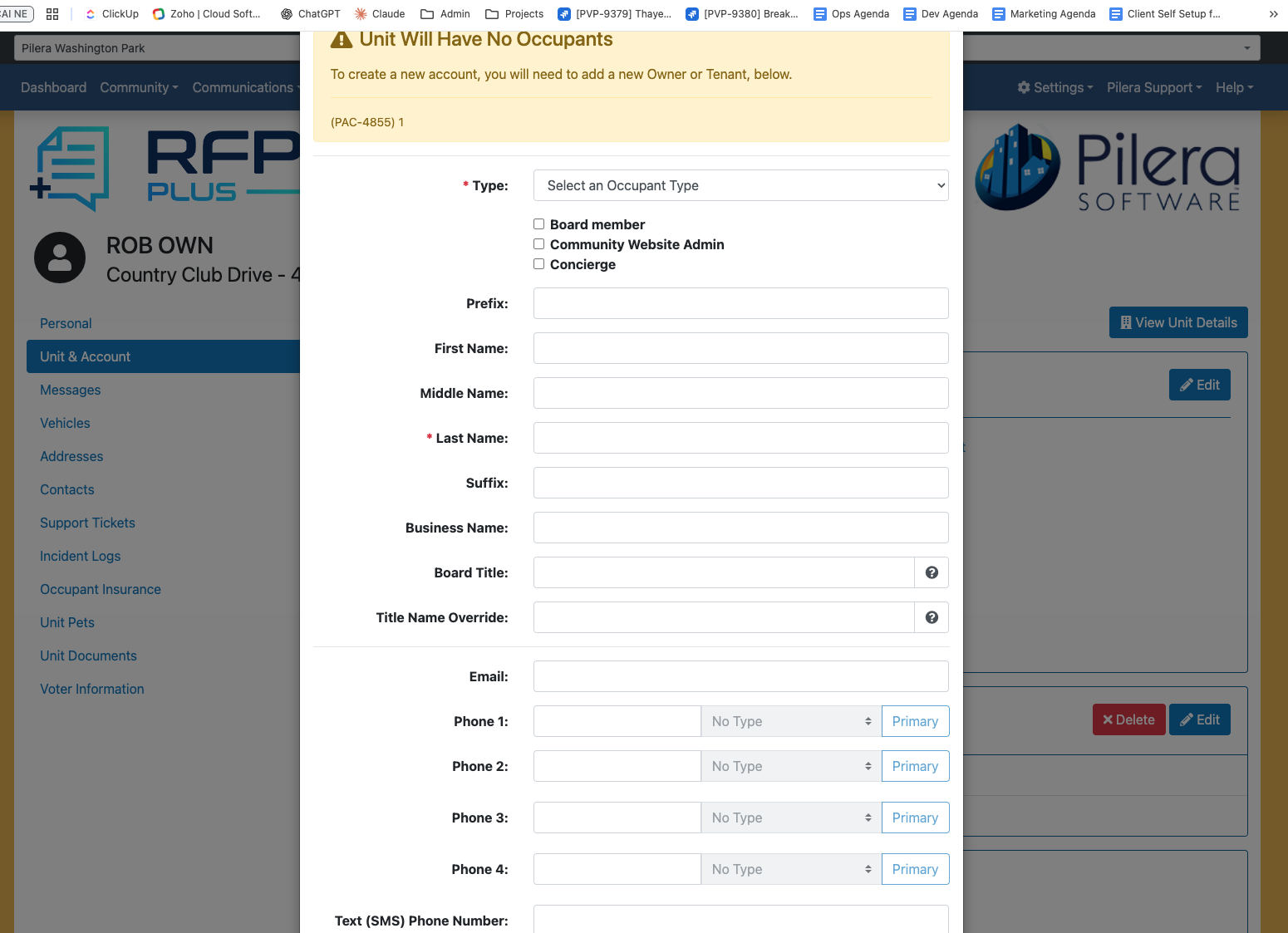 Many features like tickets and unit documents are tied to the account. When a new person moves in they will only see those related to their specific account but the data will be retained within Pilera for administrative needs.